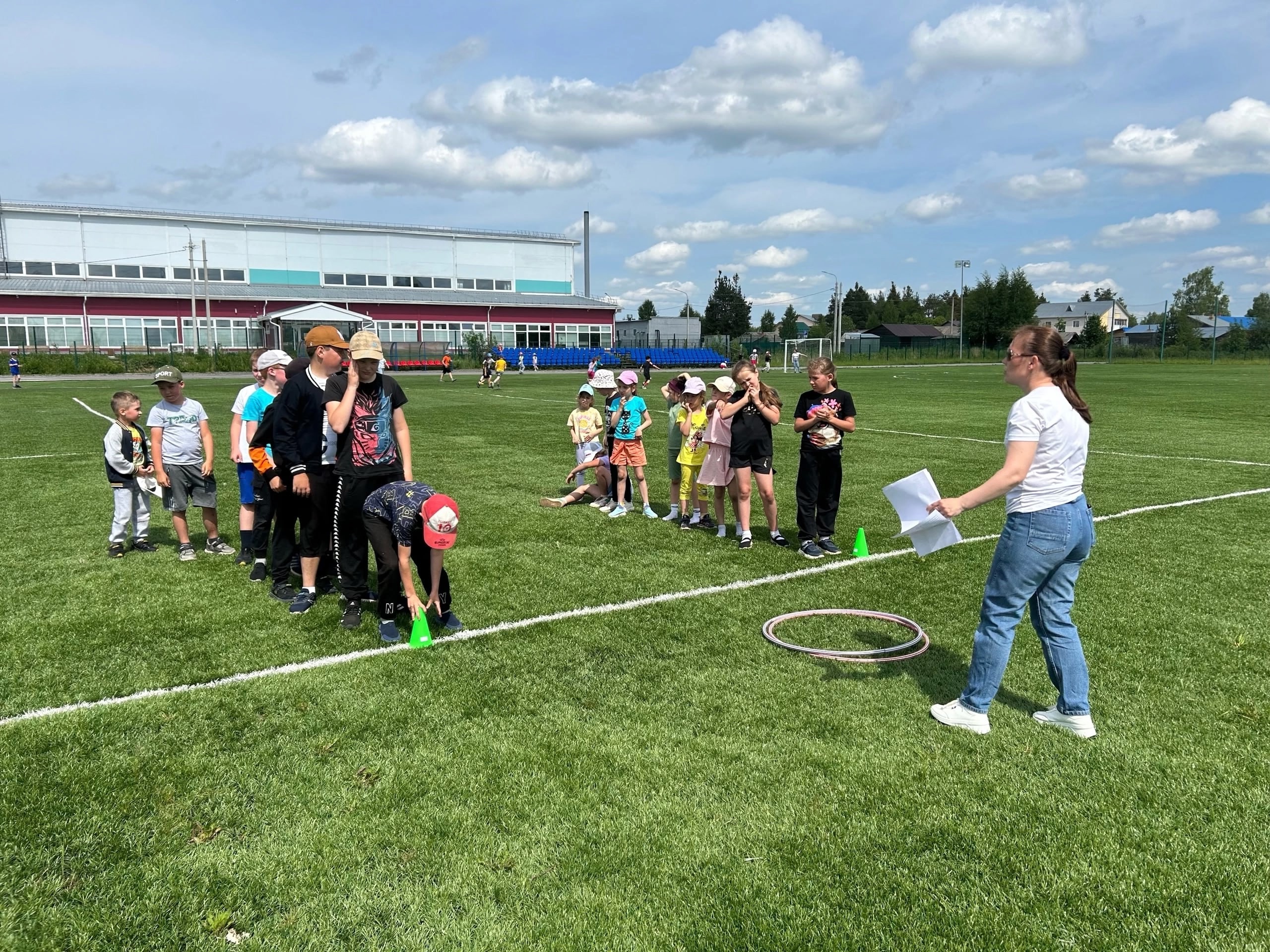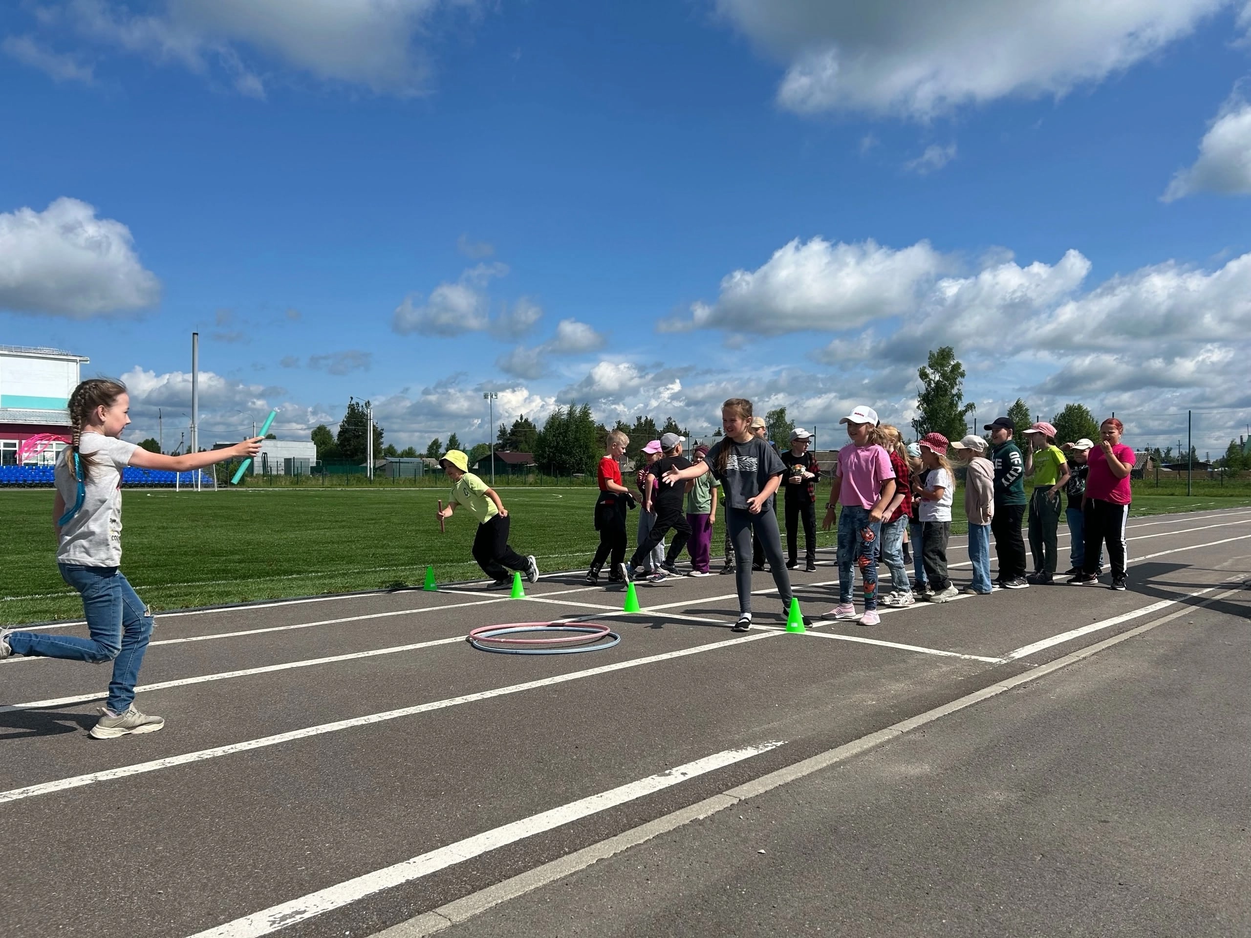 После завтрака на стадионе прошла эстафета, посвященная всемирному дню бега.